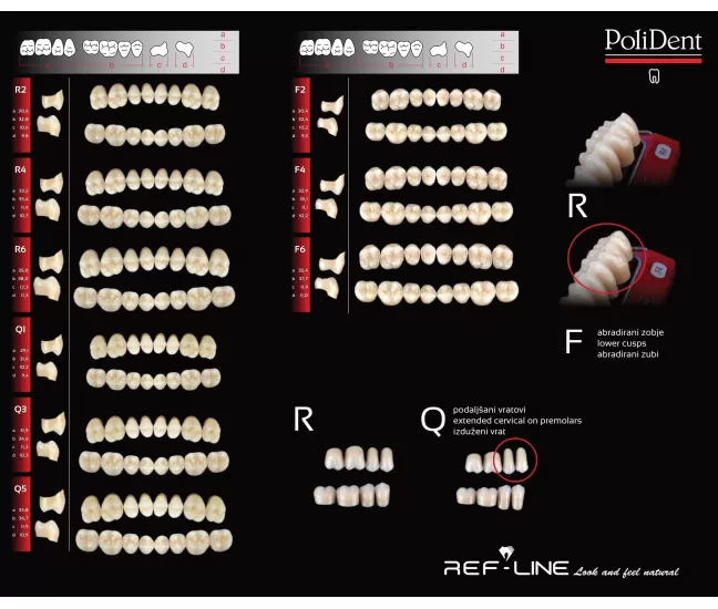 High end anatomically shaped multi-layer tooth line for new generation prostheses.Characteristics: