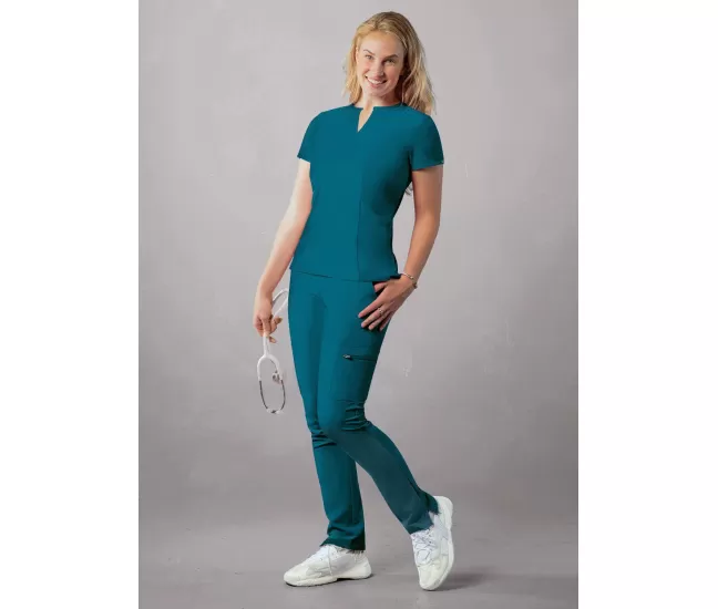Notched V-neck Top A6002 Caribbean BlueContemporary Fit.