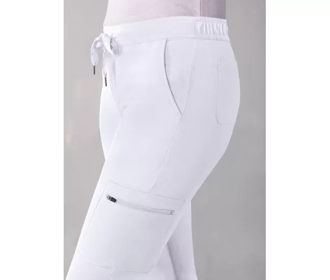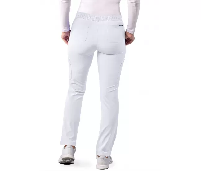 This contemporary fit, skinny leg, mid-rise cargo pant, sits right below your natural waist, features a total of eight pockets for maximum secured storage.Two deep front slashed pockets, one small internal pocket on left side, a large cargo pocket on the right side with scissor pocket, a large cargo zipperd pocket on the left side and two curved back pockets.