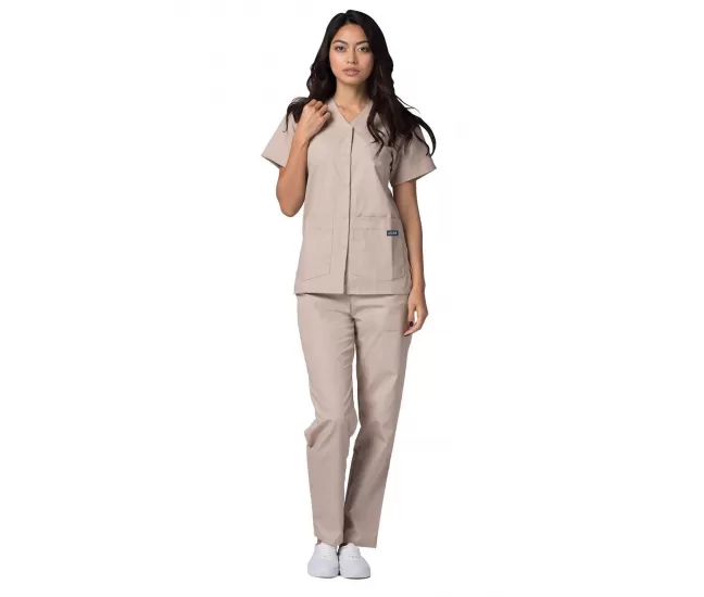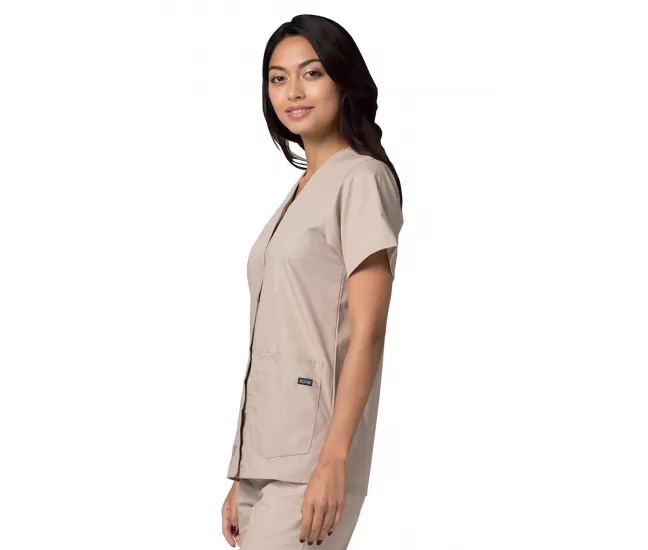Double Pocket Snap Front Top 604 KhakiSnap Front V-neckline Scrub top.