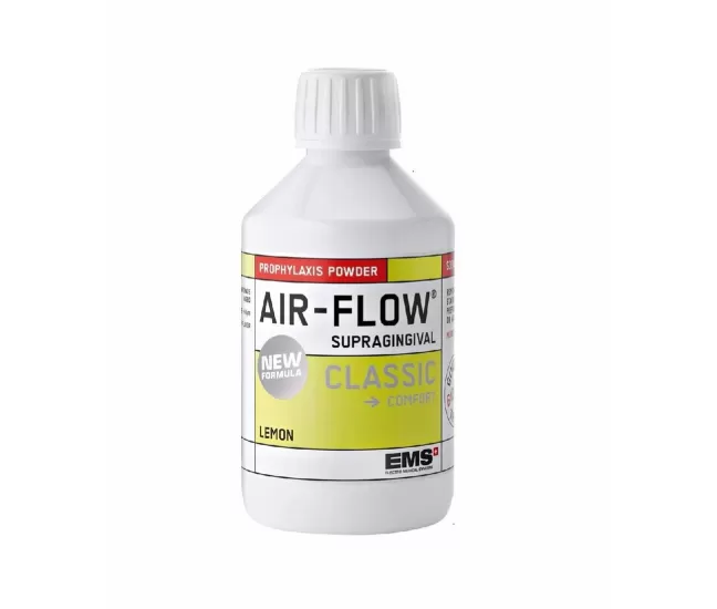 Prophylaxis powder Air Flow Comfort, 300 gThe AIR-FLOW® CLASSIC sodium bicarbonate powder has just been revamped with a new formula: the CLASSIC COMFORT. The granule-metric size has been reduced by almost 40% for maximum patient comfort, going from 65 µm to 40 µm. It’s pleasant, it’s tasty and equally effective at removing biofilm, stains, heavy pigmentation and young-calculus. Thanks to the reduced grain size and a variety of flavours, prophylaxis has just gotten tastier – try it, patients love it!