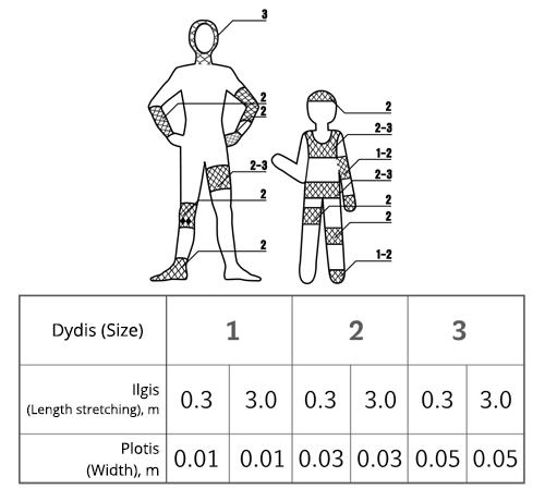 Size: 1 (width - 0.01 m) ; 2 (width - 0.03 m) ; 3 (width - 0.05 m) .