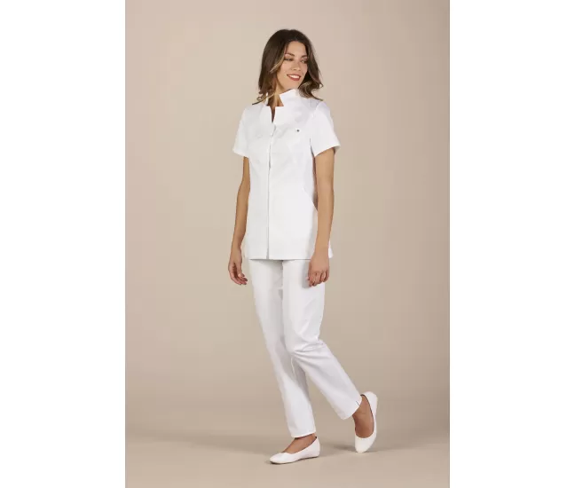 Medical elegant T-shirt Vevey whiteGabardine 100% double twisted cotton, 220 gr.