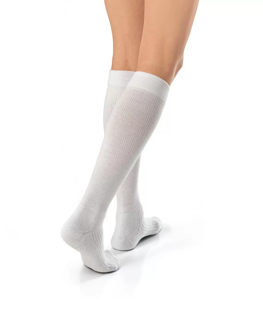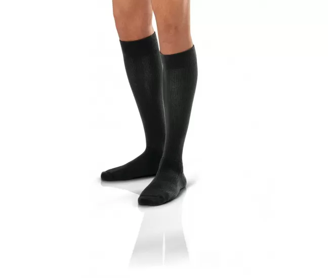 Medical compression stockings to the knees, covering the toes, CCL1, JOBST ActivewearJobst Activewear, a cushioned compression sock, was designed with superior moisture management and extraordinary softness. These comfortable support socks are ideal for any activity! Dri- release yarns feel like cotton and helps keep feet dry and comfortable. Wide comfort band secures sock in place. Cushioned foot and seamless toe provide all-day wearing comfort!