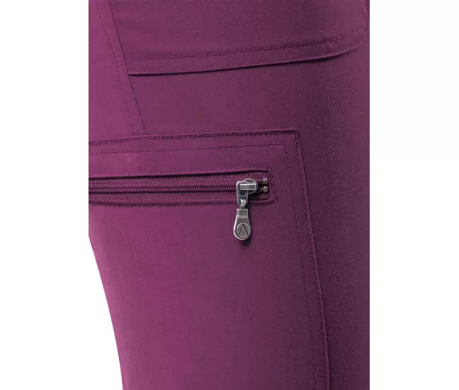 These comfortable scrub pants sit right below the natural waist. It comes equipped with a leg zip pocket and side pockets for storage.