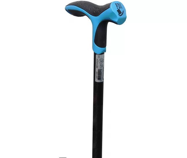 Walking stick SOFT STEP, blueThe contoured handle is additionally covered with a soft non-slip material that prevents slipping out of the hand.