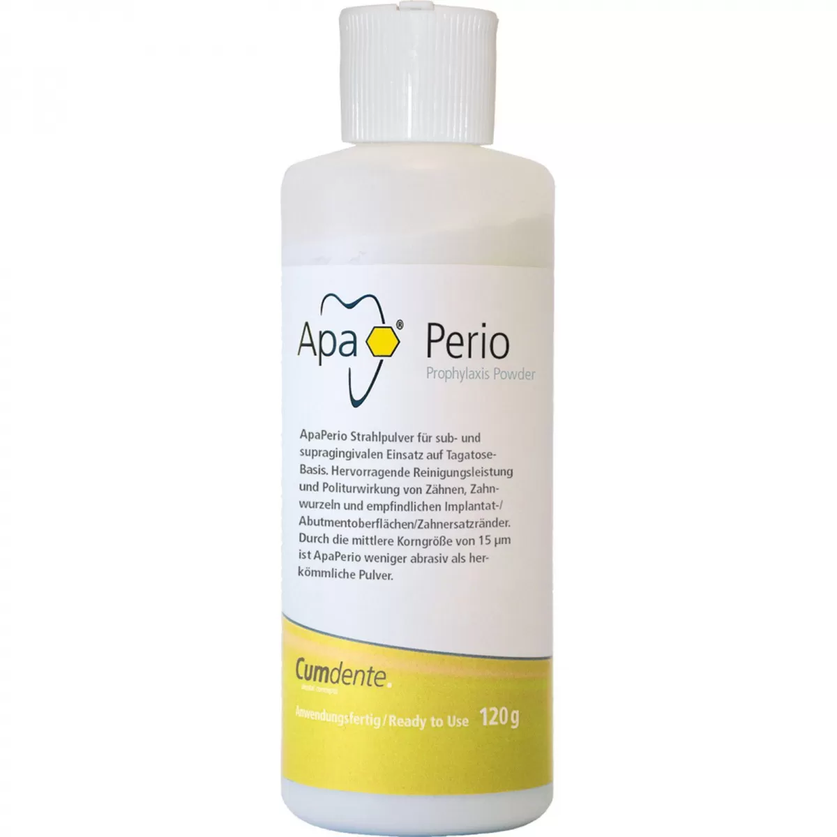 ApaPerio Air polishing powder, 120 gApaCare ApaPerio highly efficient, gentle blasting powder for subgingival application / implant cleaning.