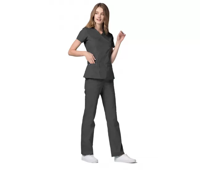 Double Stiched Mock Wrap Top 2638 PewterThis double stitched mock wrap scrub top features princess seams in both the front and back for a flattering silhouette.