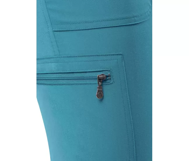 These comfortable scrub pants sit right below the natural waist. It comes equipped with a leg zip pocket and side pockets for storage.