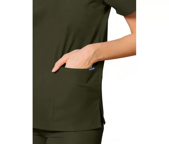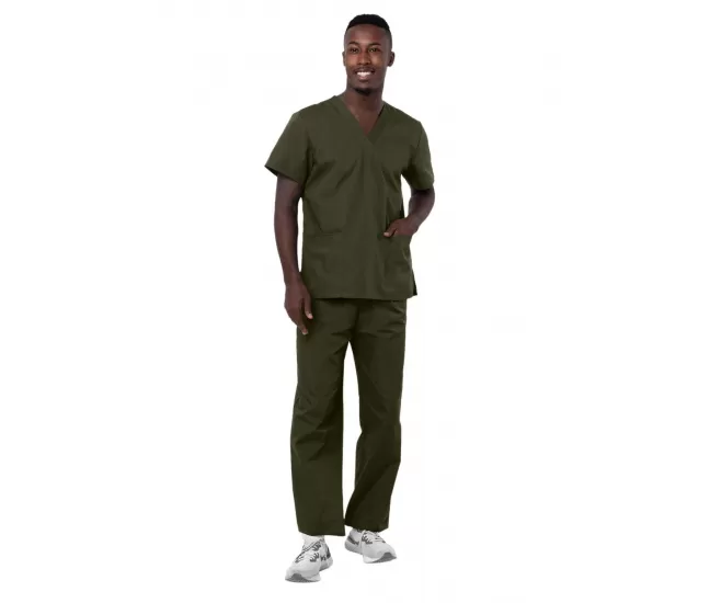 Unisex Drawstring Scrub Set 701 OliveTop details: