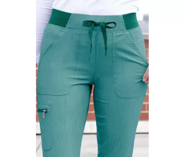These comfortable scrub pants sit right below the natural waist. It comes equipped with a leg zip pocket and side pockets for storage.