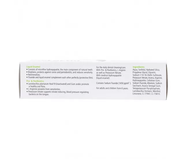 Brightens, protects against caries and periodontitis, and reduces sensitivity.