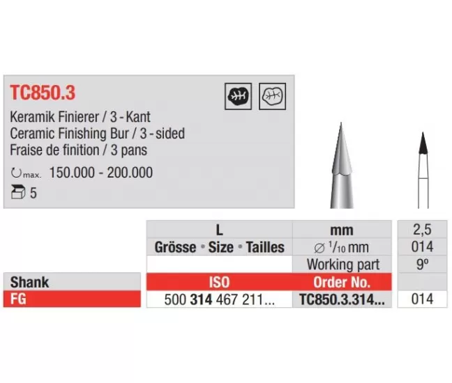 Carbide bur TC850.3 for turbine handpiece, (the price is for 1 piece, in a package of 5 pieces)