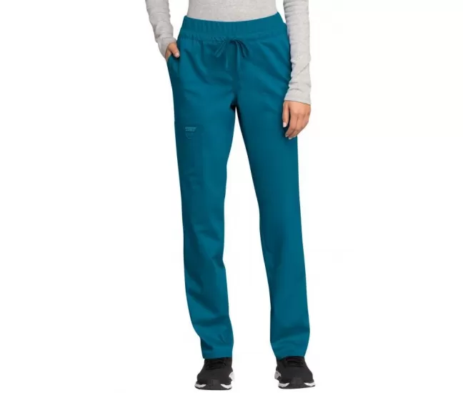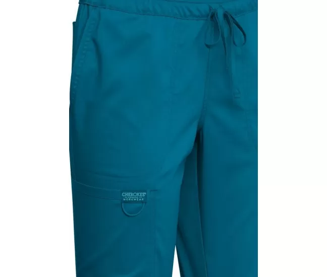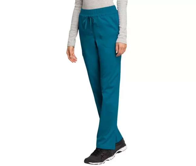 Mid Rise Tapered Leg Drawstring Pant WWE105 in Caribbean BlueOur mid rise tapered leg pant features pull-on styling with an elastic waistband and front drawstring closure.