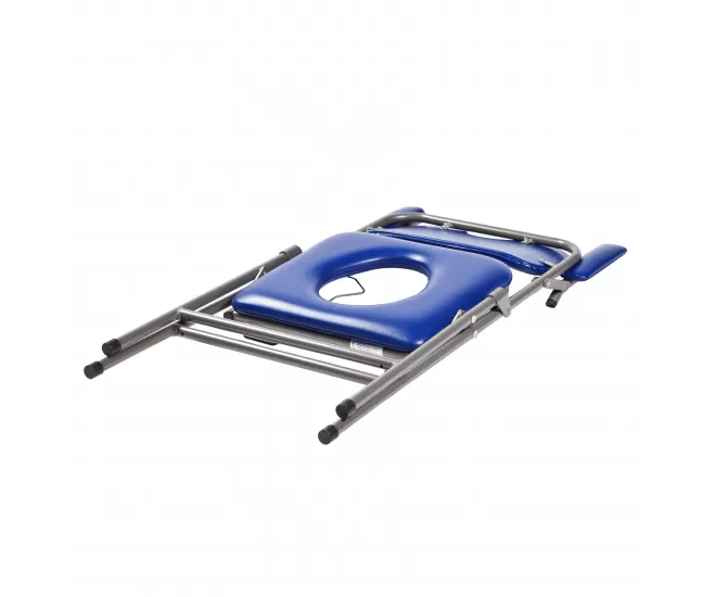 Compact folding toilet chair is a practical and convenient choice for people with difficulty moving or in cases where there is no possibility to use a regular toilet. Without using the chair, you can easily fold it without any special tools. The frame is made of painted steel, the back and armrests of the chair are padded and covered with perfectly clean artificial leather. The armrests lift up, allowing you to get in and out of the chair from the side (e.g. from a bed or wheelchair).