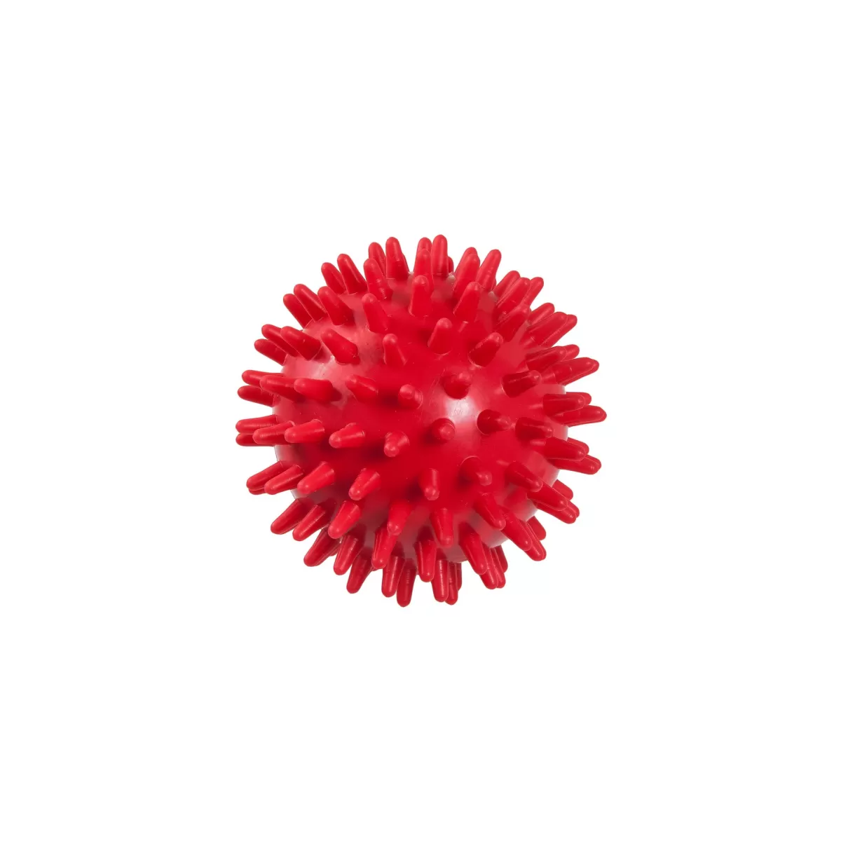 Rehabilitation ball with spikes 8cm / redThe spiked ball is intended for rehabilitation, hand and foot exercise and body massage. The surface of the ball is covered with protrusions that additionally stimulate skin receptors and improve blood supply and microcirculation, thus reducing tension and relaxing muscles.