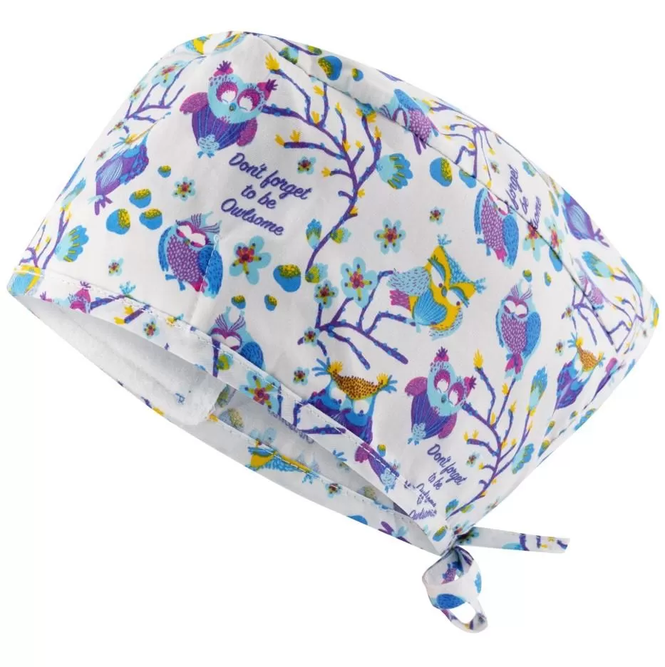 ADRIANA Surgical Cap, White OwlsSurgical cap with cheerful print made from high-quality fabric with elastane and 3D FLEX Technology for enhanced comfort.