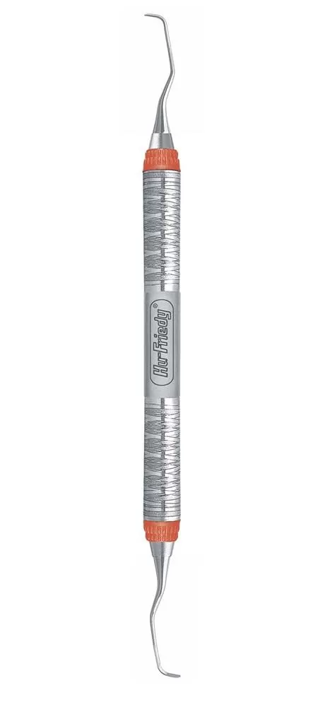 Наклонен, чтобы достичь медиальных поверхностей задних зубов.Номер кюретки: #11/12.