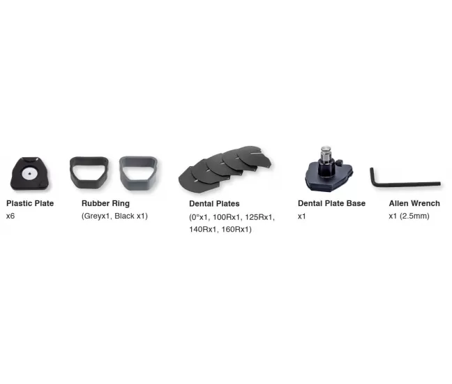 Package: 1 x Articulator LABO-MATE 600H; 6 x Plastic plate; 2 x Rubber ring; 5 x Dental plates (0°, 100R, 125R, 140R, 160R); 1 x Dental plate base; 1 x Allen wrench.