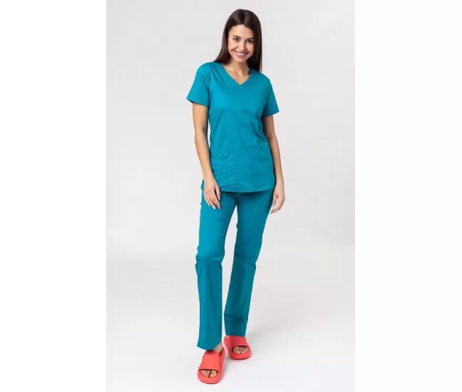 Medicīniskā sieviešu blūze WWE4727 zaļganaCherokee WWE4727 sieviešu blūze ir izgatavota no 55% kokvilnas, 42% poliestera un 3% spandeksa, tāpēc tā viegli stiepjas un lieliski pieguļ.