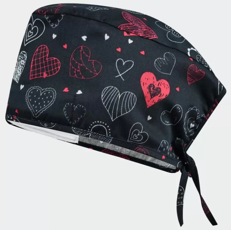 ADRIANA Surgical Cap, black with dark heartsSurgical cap with cheerful print made from high-quality fabric with elastane and 3D FLEX Technology for enhanced comfort.