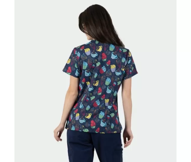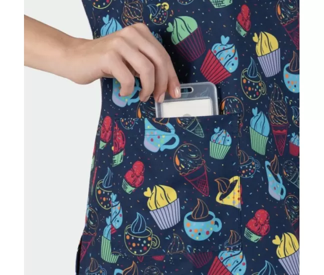 Women's Medical tunic ISABELLA, blue with cup cake