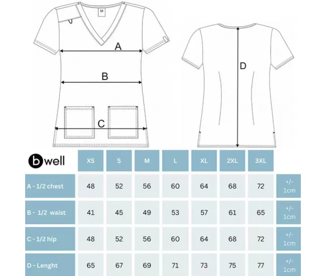 3D Flex is an exclusive technology that is used in all products made of fabric with an elastane content of 2% or more. It allows for stretchability of the fabric in all directions, which provides the necessary freedom of movement and comfort during work. High-quality fabrics with 3D Flex technology are used in the production of b-well medical clothing.