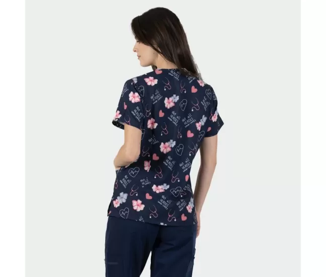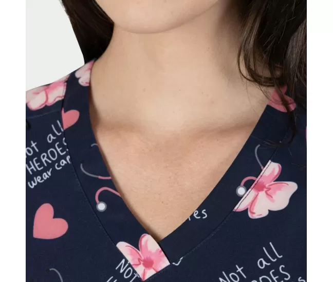 Women's Medical tunic ISABELLA, navy with heroes (Not all HEROES wear capes)Medical tunic ISABELLA is a new model, elegant, women's tunic of the B-well brand with a modern and stylish design, fitted silhouette and ethereal fabric.