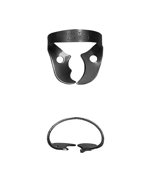 Offset jaws for upper left molars.Paired with rubber dam clamp #31.