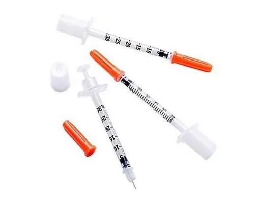 Insulin syringe, 0.3 ml, with fixed needle 30G, 100 pcsDisposable insulin syringes with fixed (integrated) needle.