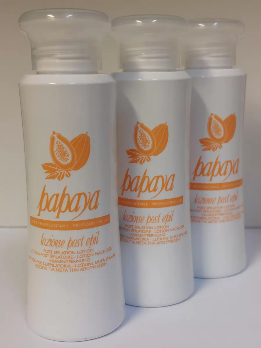 Losjons pēc depilācijas ar papaijas ekstraktu matu augšanas palēnināšanai, ROIALMatu augšanu slāpējošs losjons, kas izgatavots no papaijas ekstrakta.