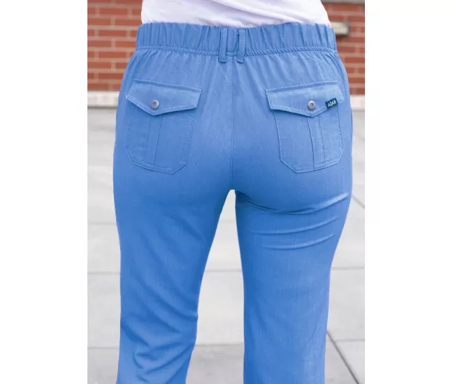 Taisnas bikses.Priekšējā jostasvieta ar ērtu aukliņu.