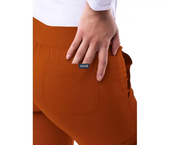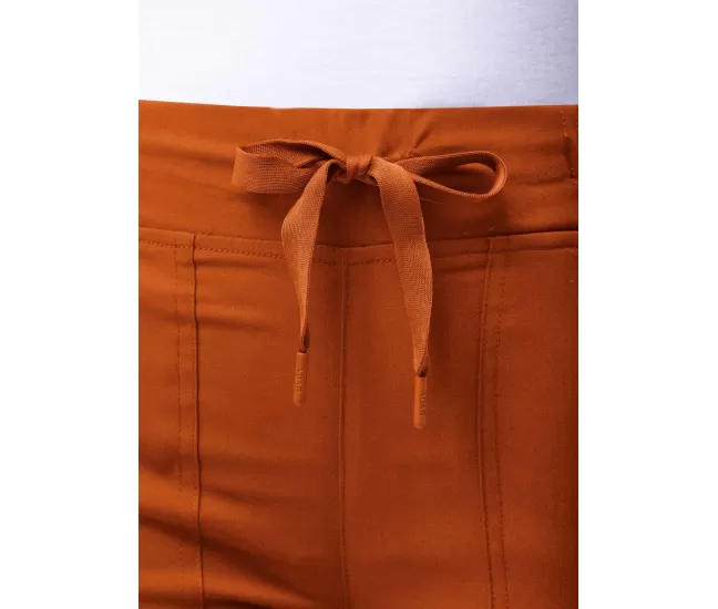 Medicīniskās bikses P7104 kanēļa krāsāPlata, elastīga jostasvieta ar aukliņu.