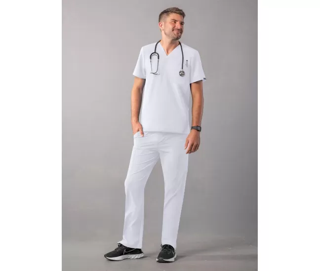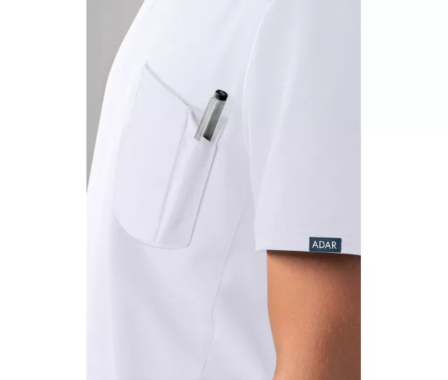 Medicīniskā blūze A6010 baltaUZMANĪBU, brīdinām, ka apģērbs, kas izgatavots no baltiem materiāliem ar poliesteru, ir nedaudz caurspīdīgs. Ja domājat, ka tas jums nederēs, iesakām izvēlēties baltu apģērbu, kas izgatavots no 100% kokvilnas.