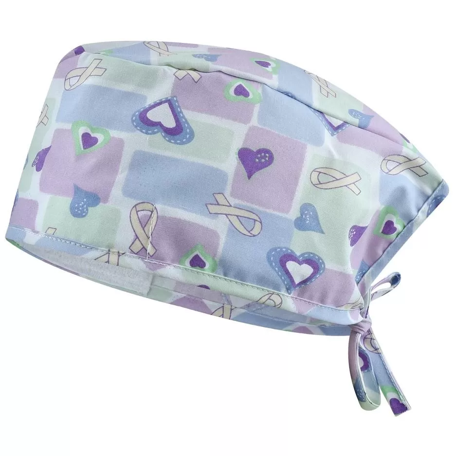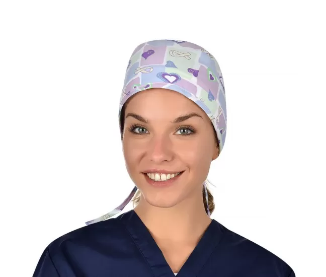 Medicīniskā cepure ADRIANA, violeta ar sirsniņām un lentītēm