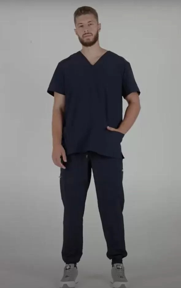 Vīriešu medicīniskais komplekts MATTEO, tumši pelēks (Kokogles)MATTEO vīriešu medicīniskais komplekts sastāv no blūzes un sporta biksēm. Komplekts ir izgatavots no inovatīva materiāla - poliestera un elastāna maisījuma, kas padara to ārkārtīgi viegli kopjamu.