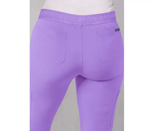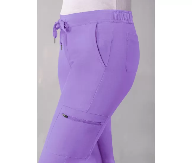 Medicīniskās kravas bikses A6104 violeta (lavandas)Priekšējā jostasvieta ar ērtu aukliņu.