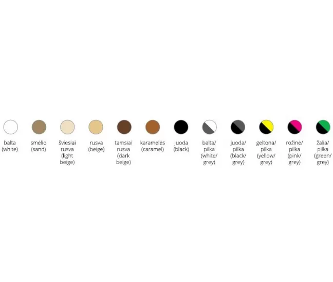 Krāsas: bēša, karamele, melna.