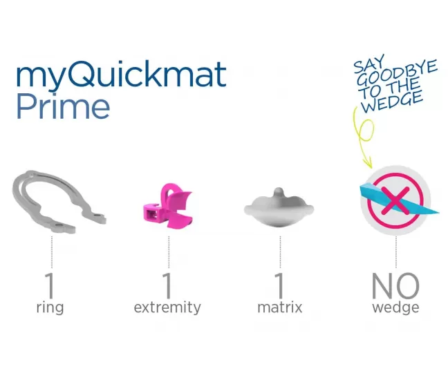 Stingras un viegli veidojamas Quickmat Prime anatomiskas sekciju matricas papildina sistēmu, ļaujot reproducēt dabisko izliekto anatomiju un precīzi veidot kontaktpunktu tuvu zoba ekvatoram.