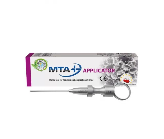 Atkārtoti lietojams zobārstniecības instruments gatava MTA+ materiāla dozēšanai, pārvietošanai un uzklāšanai.Instruments ir izgatavots no korozijas izturīga nerūsējošā tērauda.