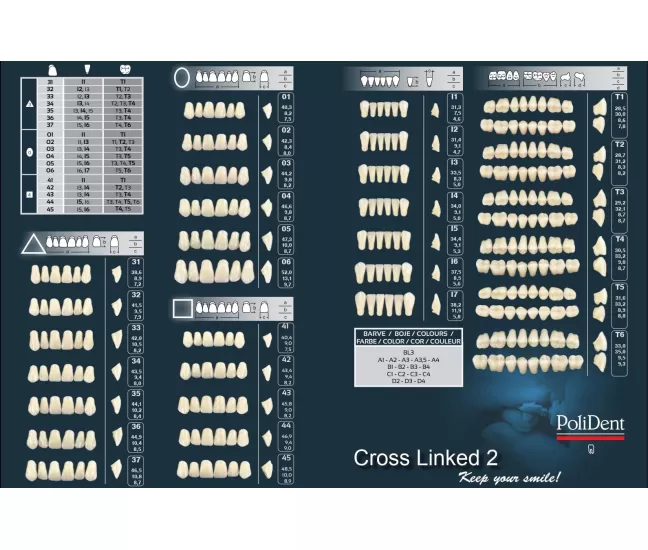 Augstas kvalitātes divslāņu akrila zobi.Raksturojums::