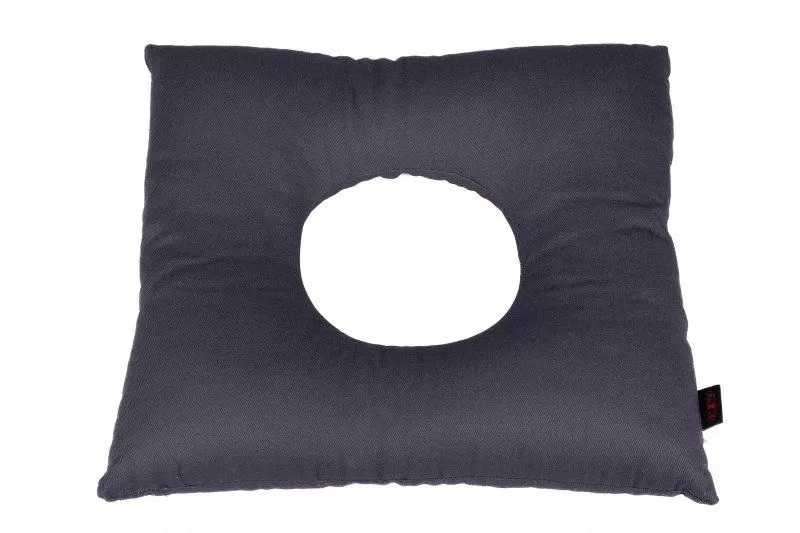 Центральное отверстие подушки снимает нагрузку с контактирующих участков тела, защищая болезненные зоны от давления.