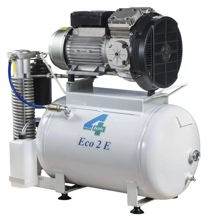 Компрессор бетеля с двумя цилиндрами и сушилкой воздуха.Разработано для двух стоматологических устройств.