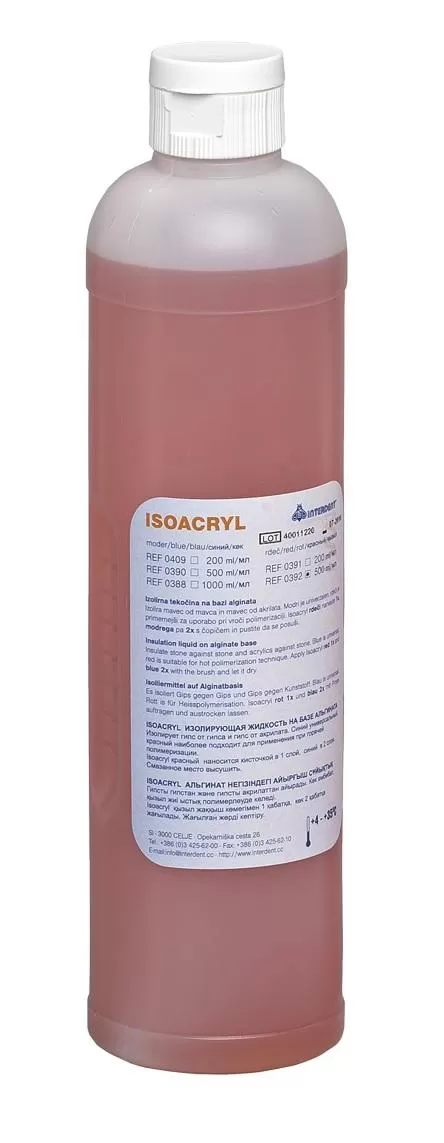 Изолирующий жидкий красный изоакрил, 500 мл<бр/>Изоляционная жидкость на основе альгината, используемая для отделения гипса от акрила и гипса от гипса.