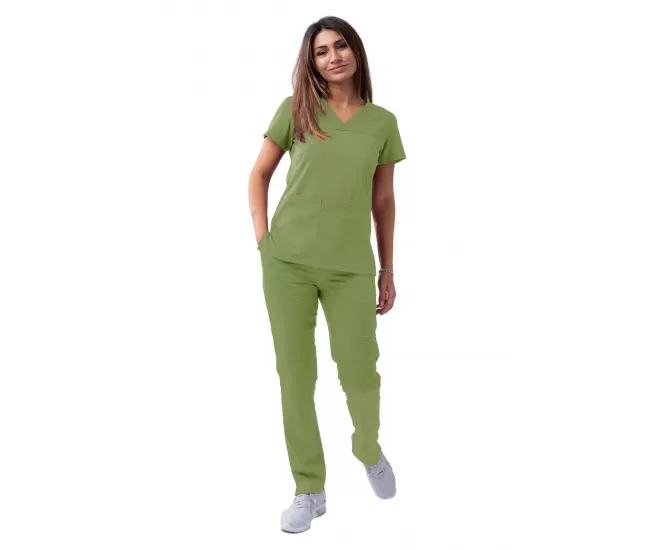 Медицинская блузка P4210 зеленого цвета весенних листов