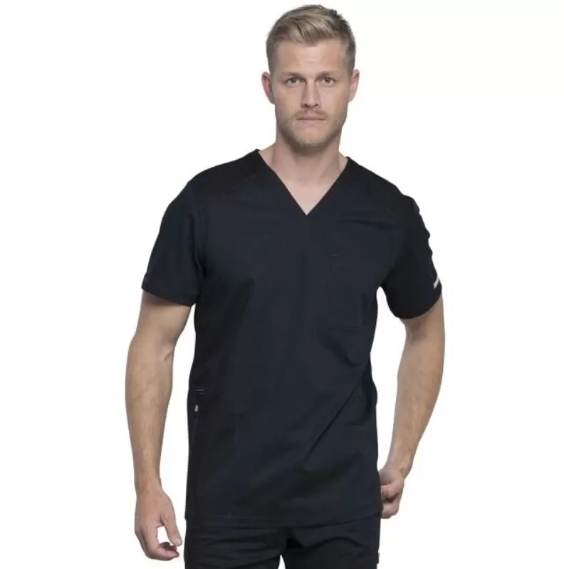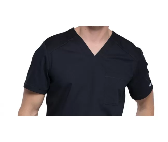 Медицинская блузка WWE603 чёрнаяСтильная мужская медицинская блузка с традиционным кроем и V-образным вырезом.