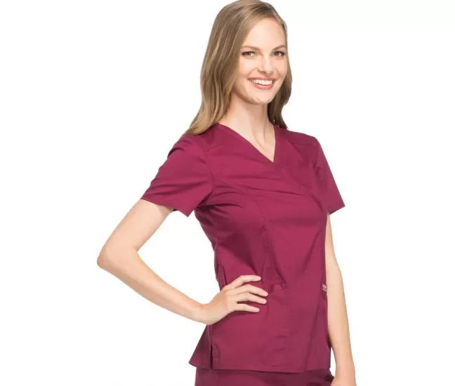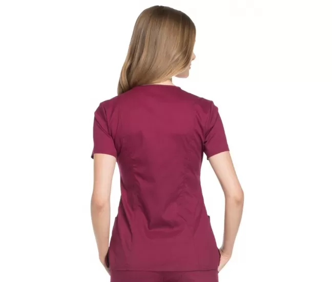 Медицинская блузка WWE610 Dark Red (Wine)Современный классический женский медицинский палладиум с V-образным вырезом и двумя передними функциональными карманами.