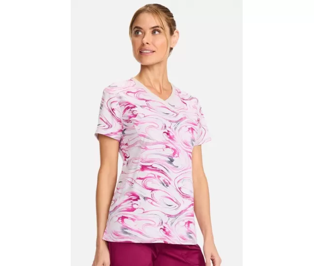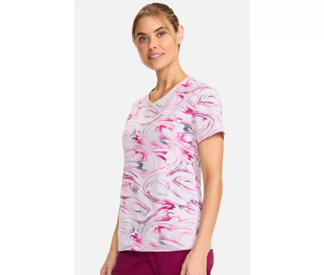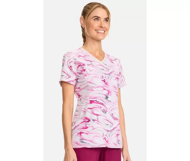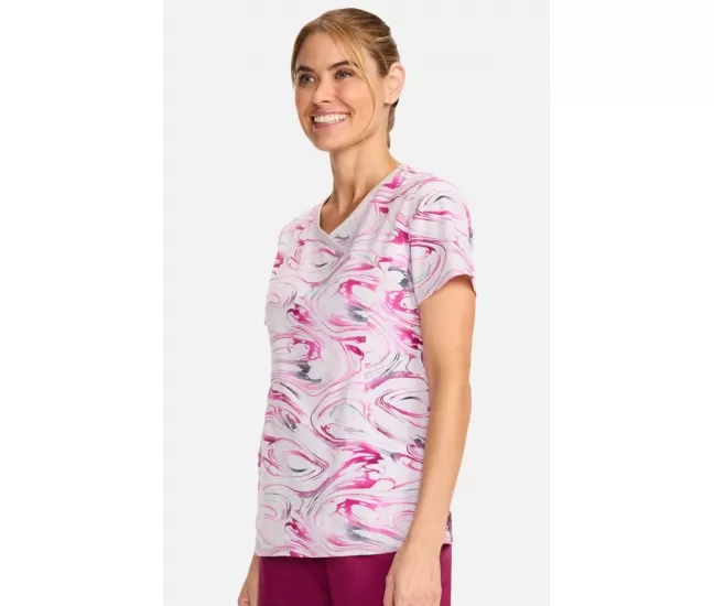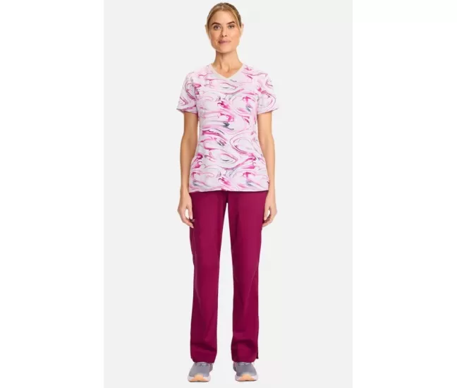 Женская медицинская блузка CK608 белая с розово-серыми узорамиПРИМЕЧАНИЕ: Одежда чероки увеличена, поэтому мы рекомендуем выбрать наряд на размер меньше.