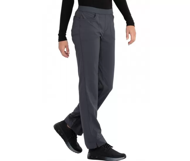 Медицинские брюки CKE1124A тёмно-серого цветаСовременные медицинские брюки с эластичным поясом и четырьмя карманами; Удобный, изготовленный из лёгкой и эластичной поплиновой ткани, идеально подходит для медицинских работников.
