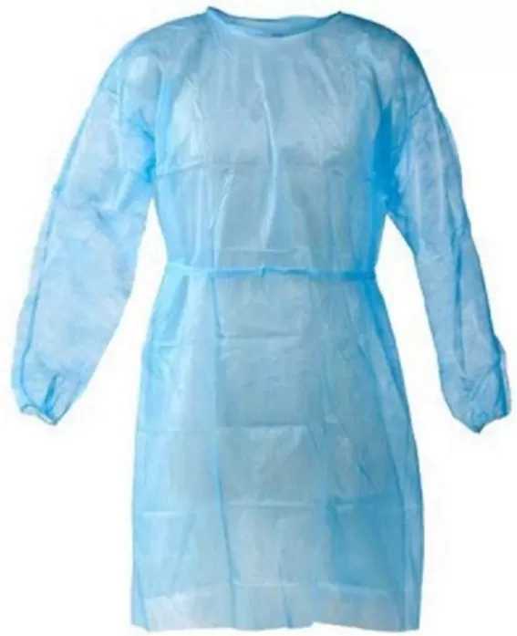 Одноразовые нестерильные халаты синего цвета с резиновой манжетой (упаковка на 10 штук. Цена за 1 штуку.)Одноразовые нестерильные халаты изготавливаются из мягкого нетканого материала (PP — полипропилен).